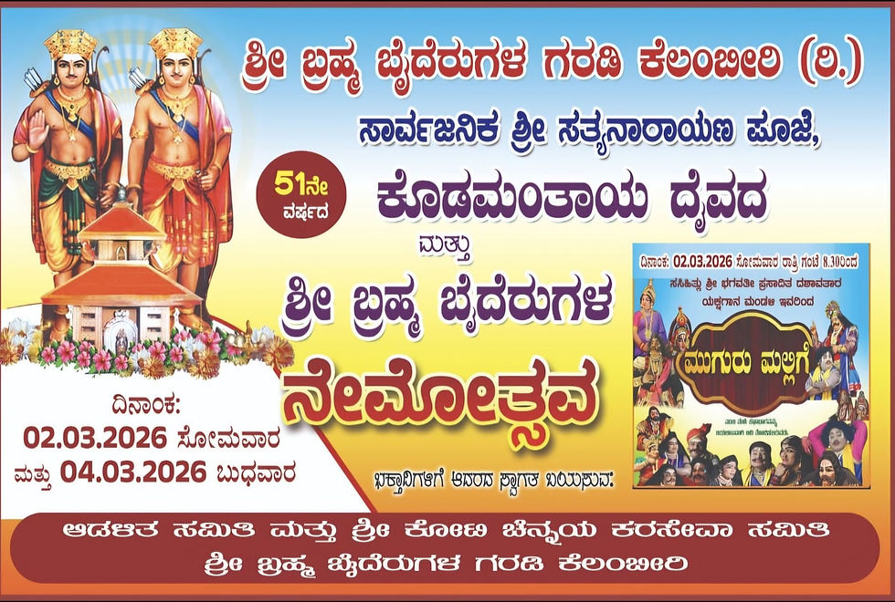 ಕೆಲಂಬೀರಿ ಗರಡಿಯಲ್ಲಿ ಶ್ರೀ ಬ್ರಹ್ಮ ಬೈದೆರುಗಳ ನೇಮೋತ್ಸವ ಹಾಗೂ ಸತ್ಯನಾರಾಯಣ ಪೂಜೆ